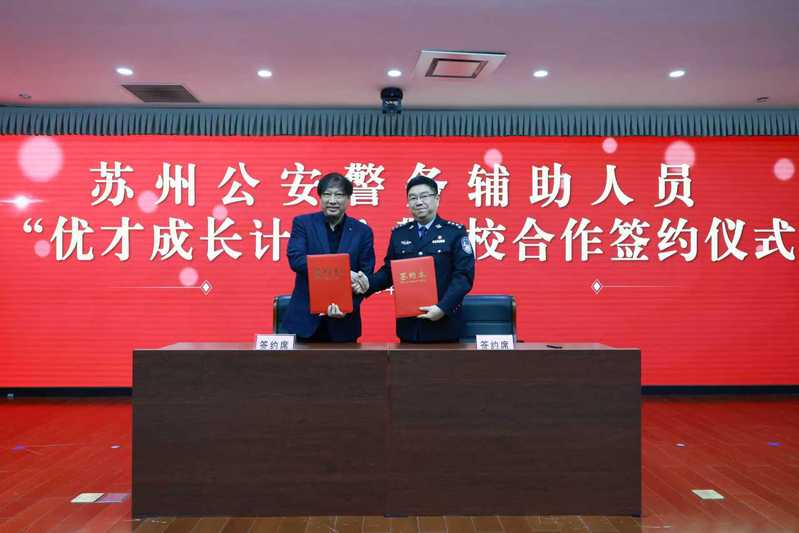 1月28日上午,苏州市公安局与我校、苏州职业大学、苏州农业职业技术学院三所高校举行警辅人员“优才成长计划”警校合作签约仪式。市局党委委员、政治部主任花秋实,我校邹学海副校长等领导出席了仪式。