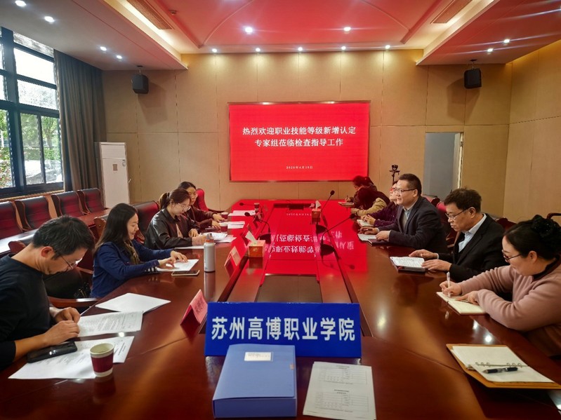 4月16日下午两点我校行政楼会议室,苏州市职业技能鉴定中心梅雪君副科长及专家组一行5人莅临我校,对工业机器人系统运维员、电工等6个工种新增4级进行现场评估,继续教育学院张红副院长主持了会议。